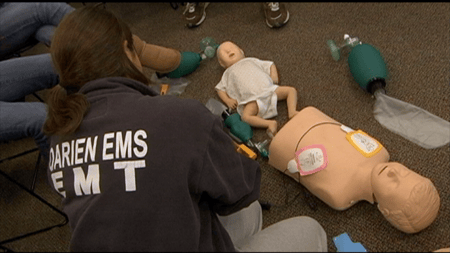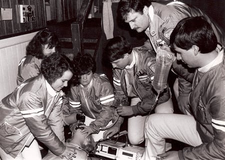Tim Warren, here in 1985, goes through CPR training with fellow members of Darien EMS - Post 53.