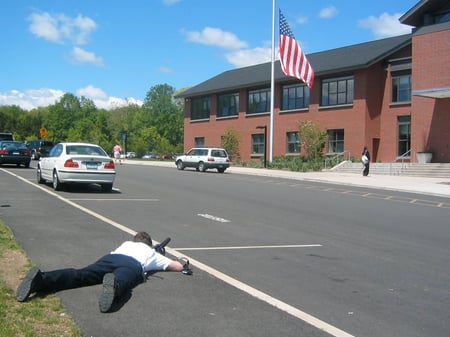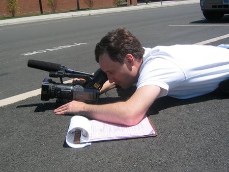Director Tim Warren gets the shot. Yes, the pavement was hot.