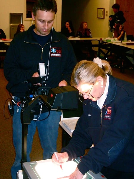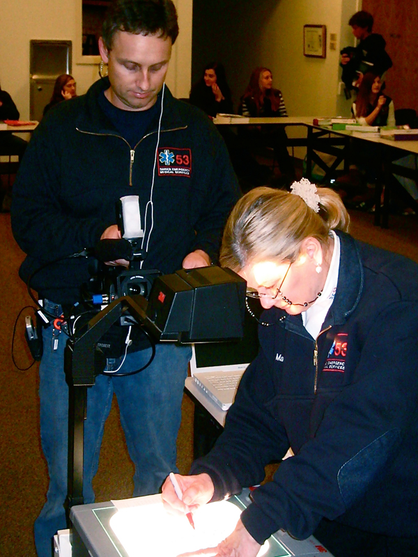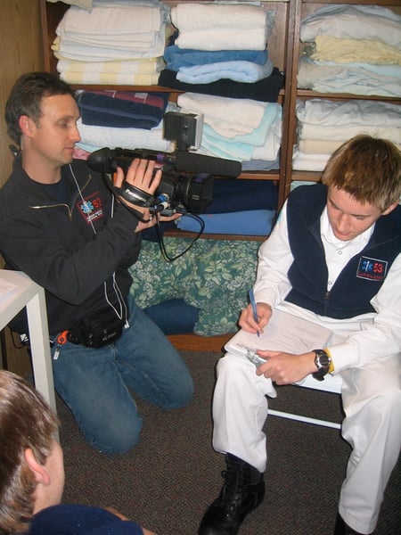 Tim Warren films EMT Instructor and Adult Advisor, Marilyn Vojta.