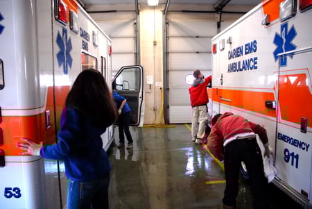 Post 53 members cleaning the ambulances.