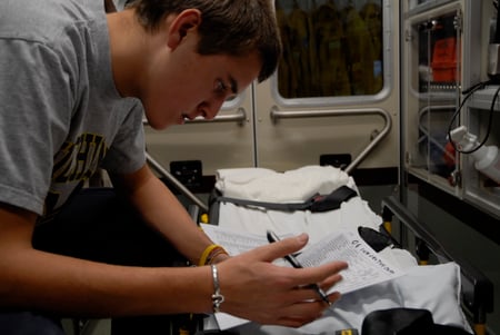 Christopher Calahan doing ambulance check out.