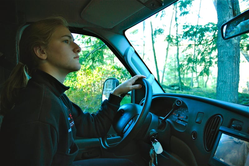 Meredith Koch drives the ambulance to a call.