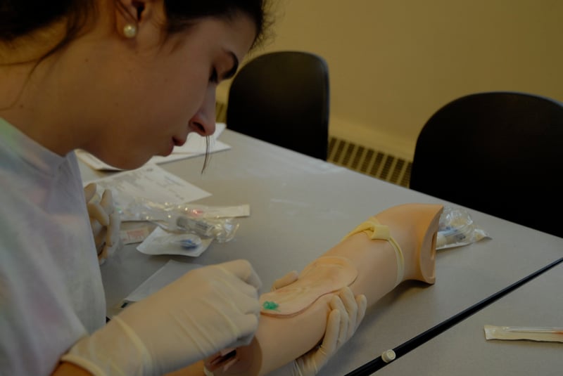 Sarah Streeter practicing IVs in EMT-I class.